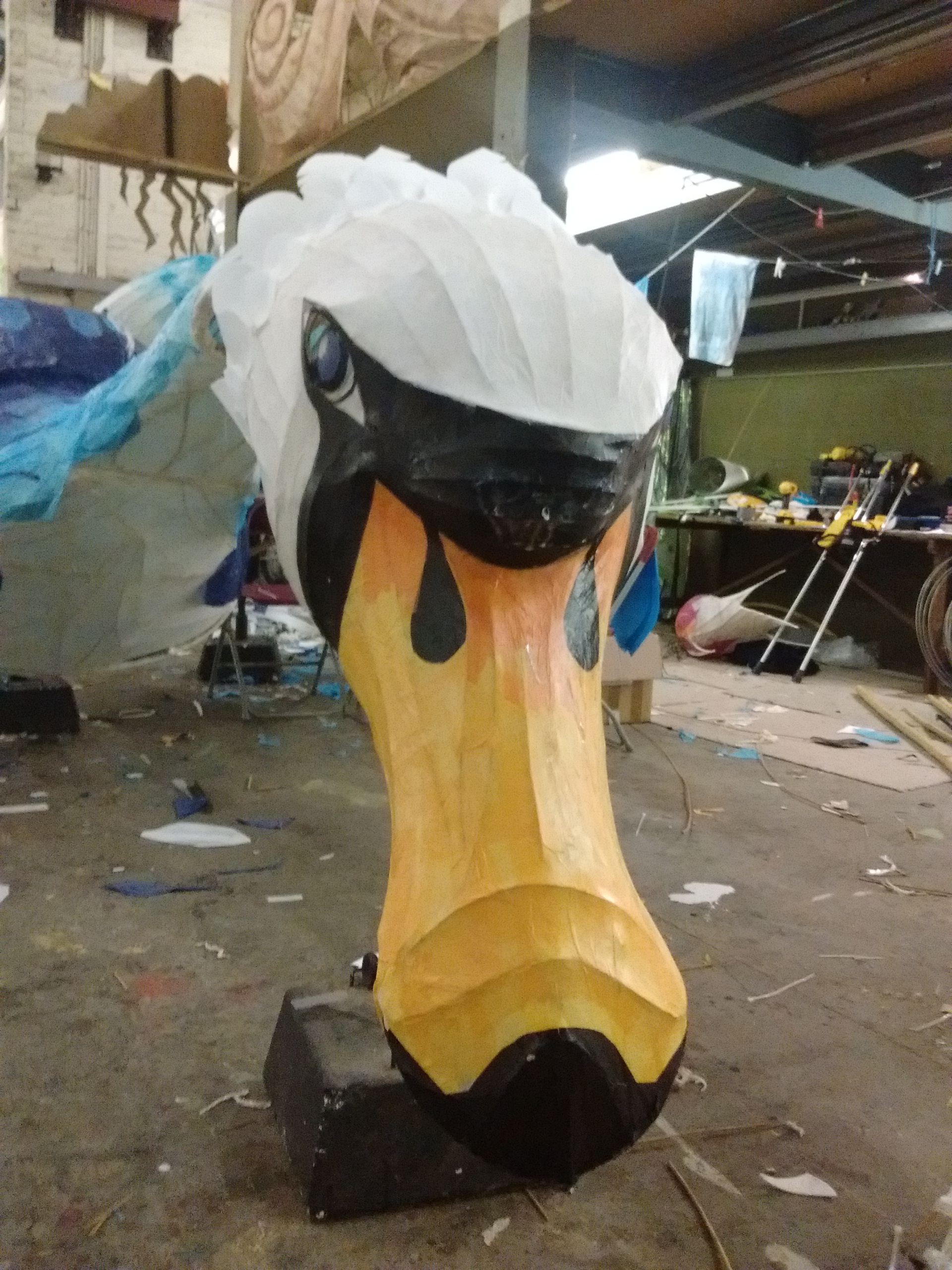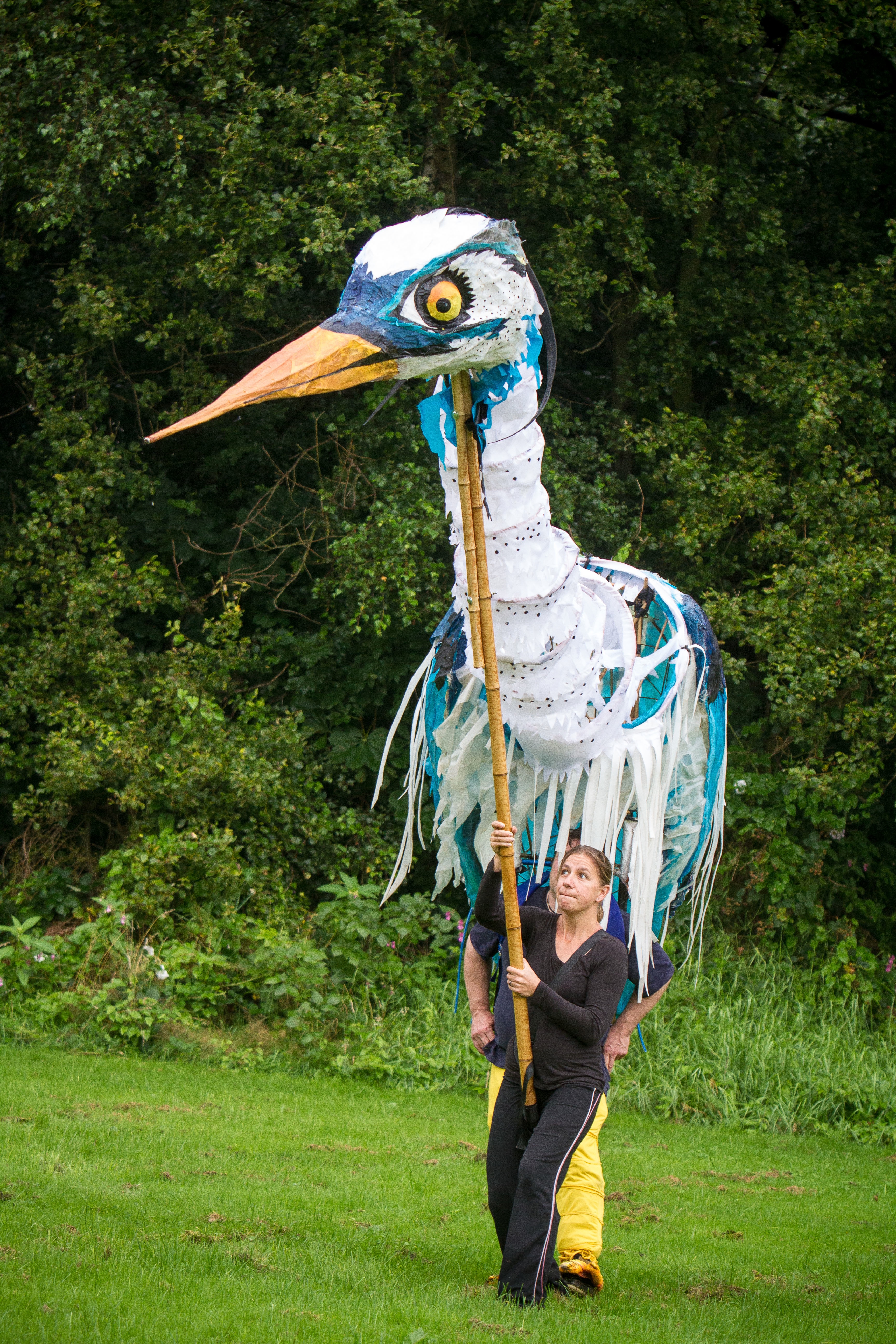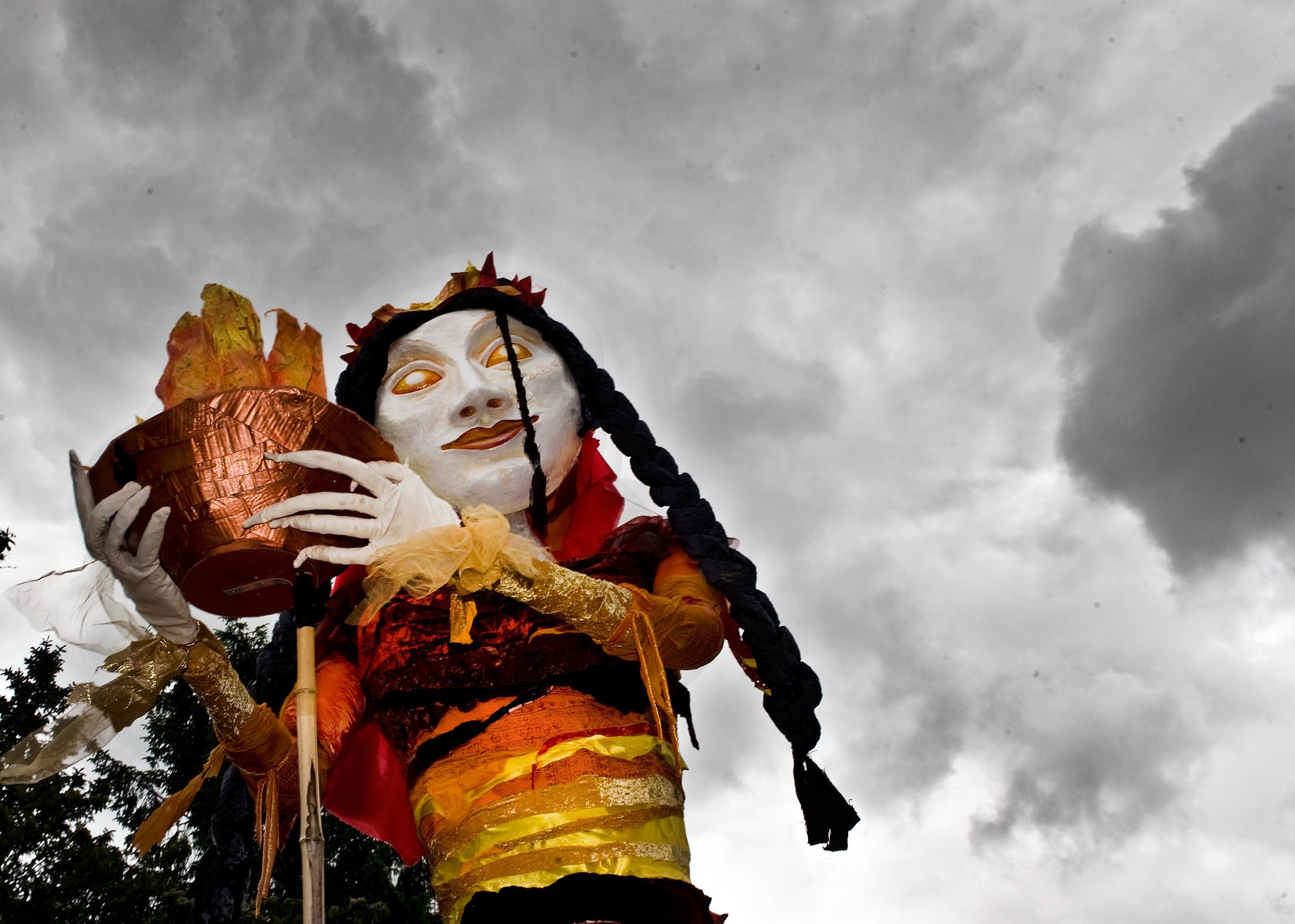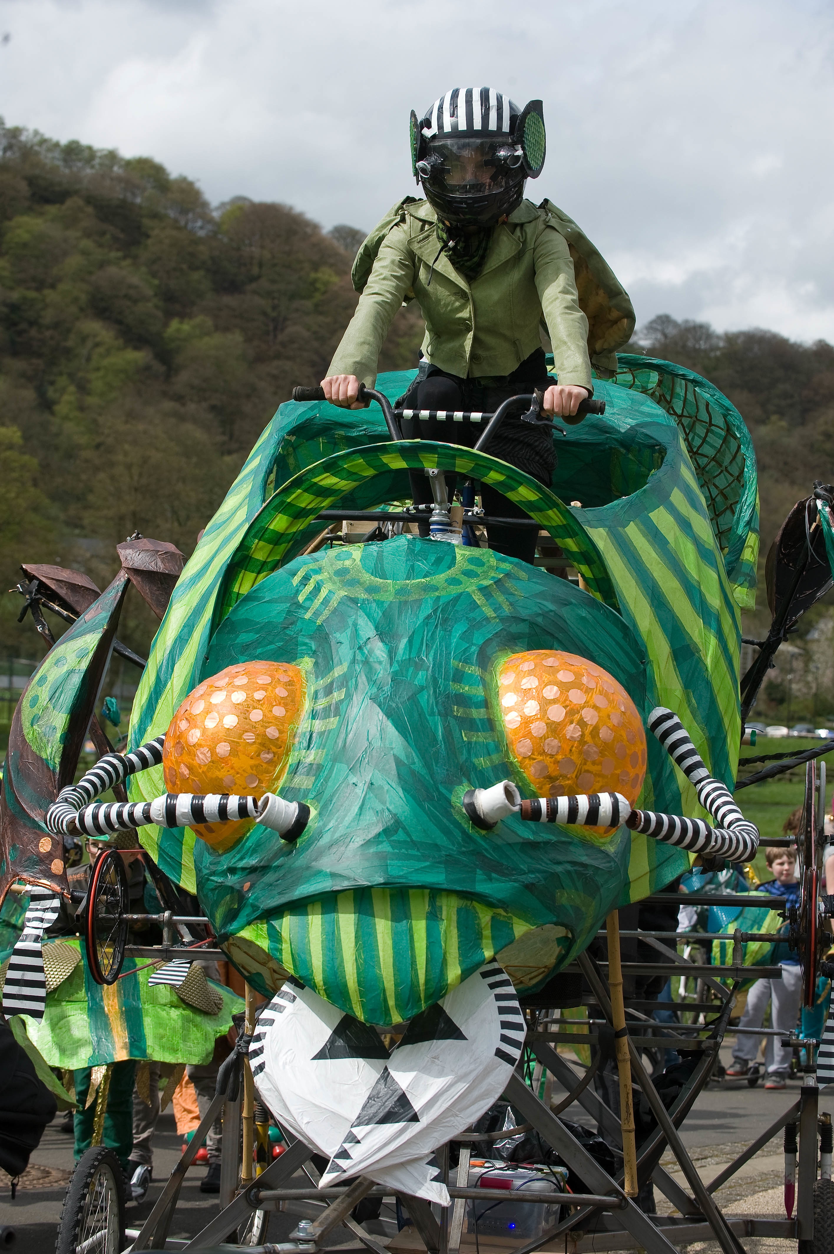 I make giant puppets, structures, and costumes for parades and festivals – out of withies and paper, cardboard, junk and things I’ve found on the floor.
