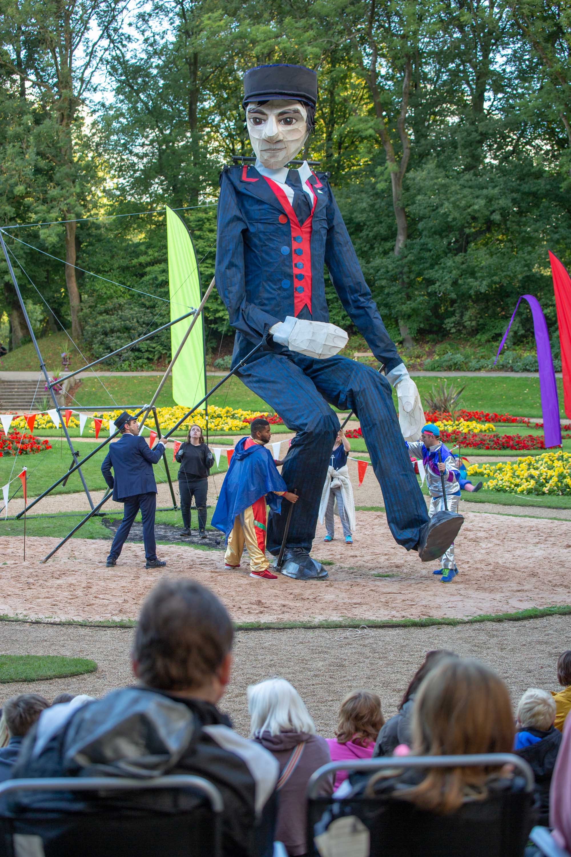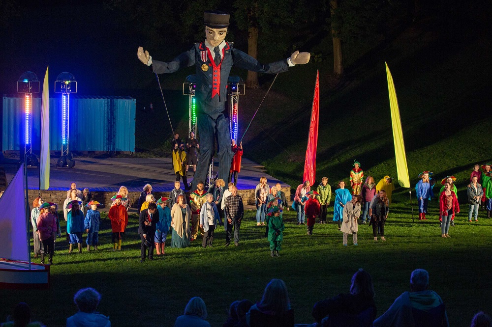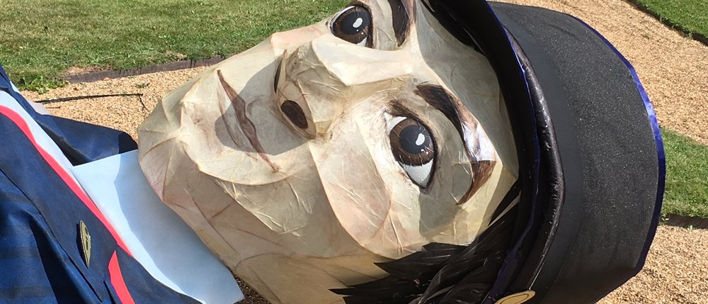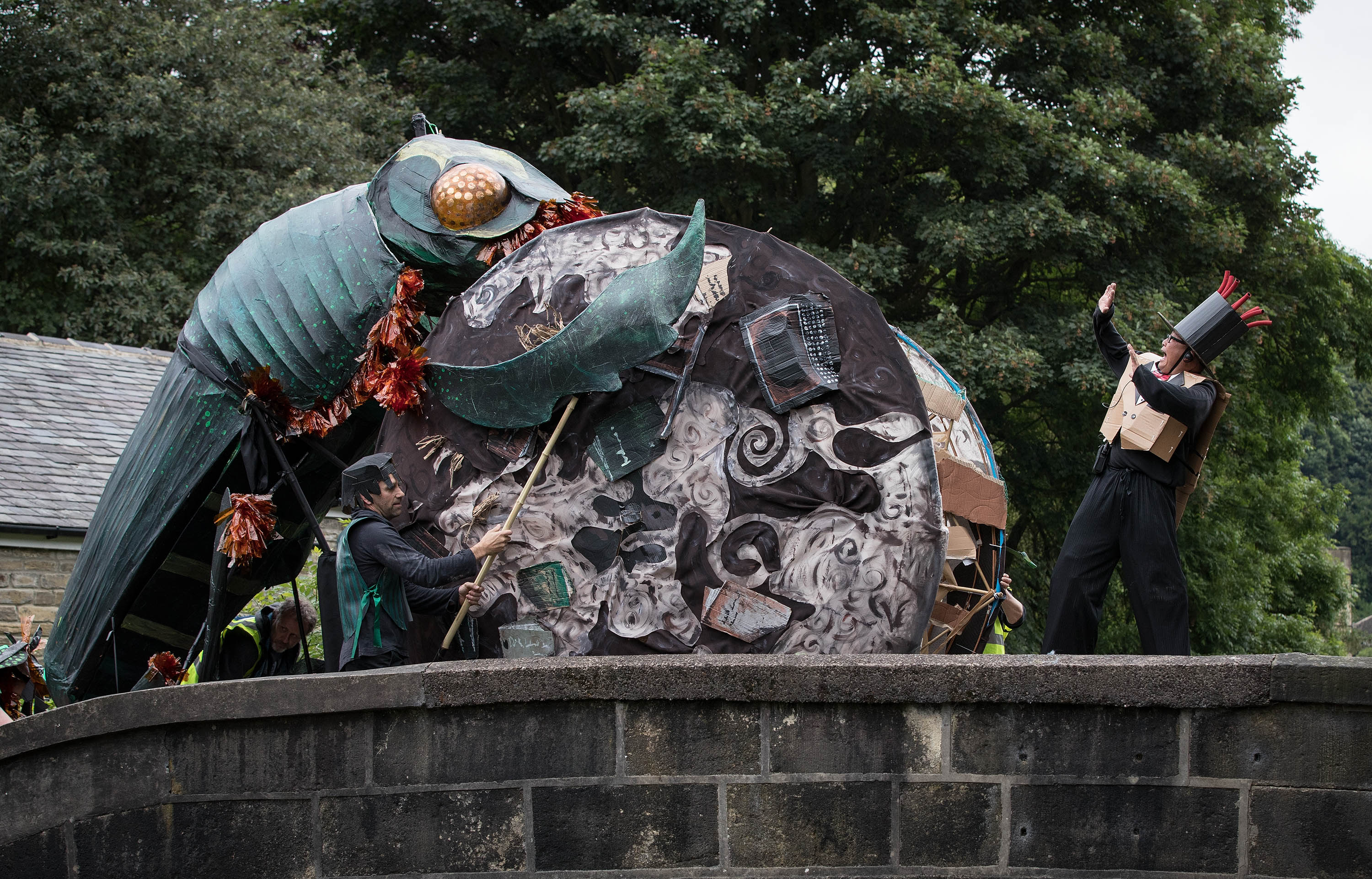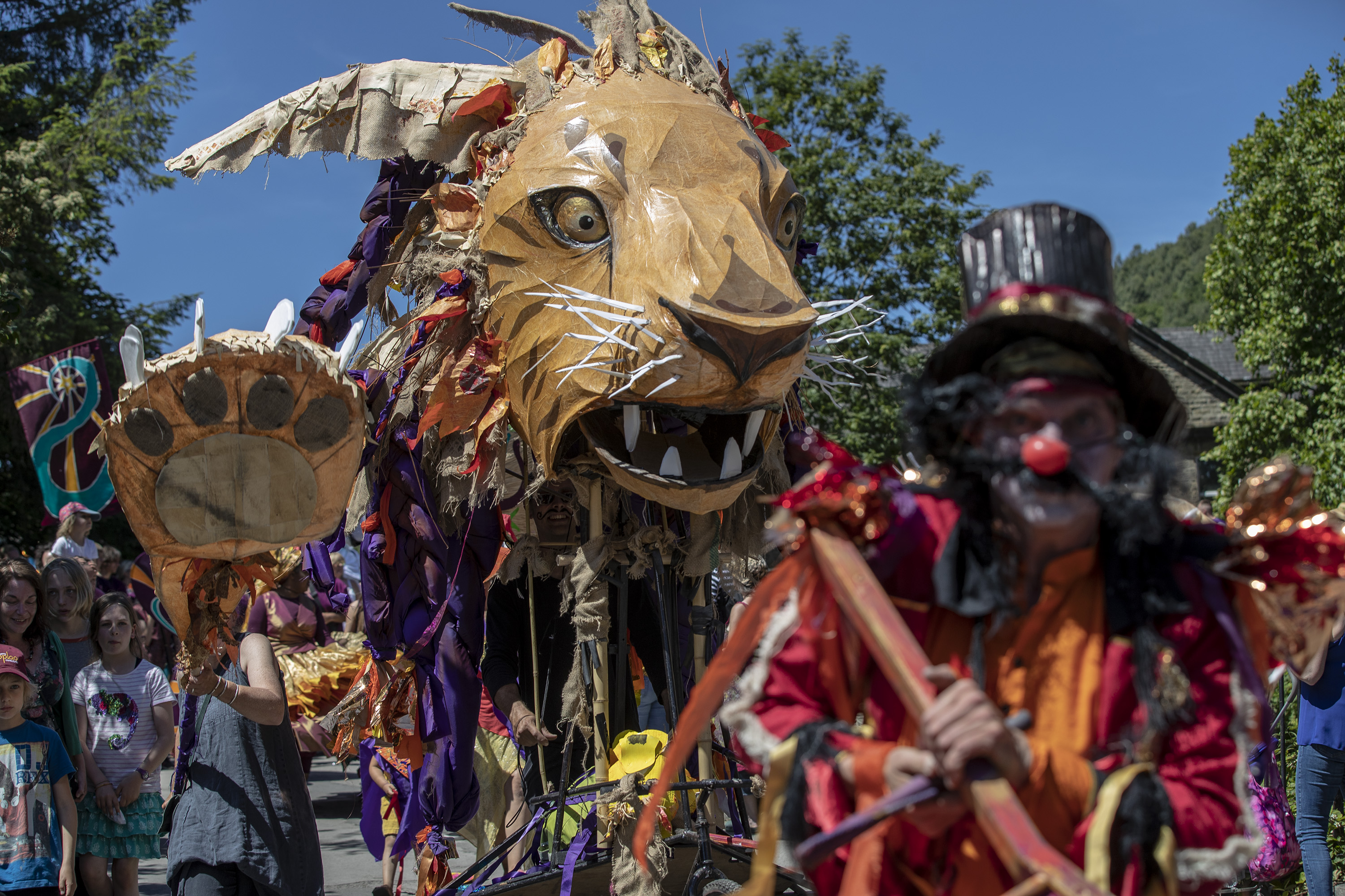 I make giant puppets, structures, and costumes for parades and festivals – out of withies and paper, cardboard, junk and things I’ve found on the floor.